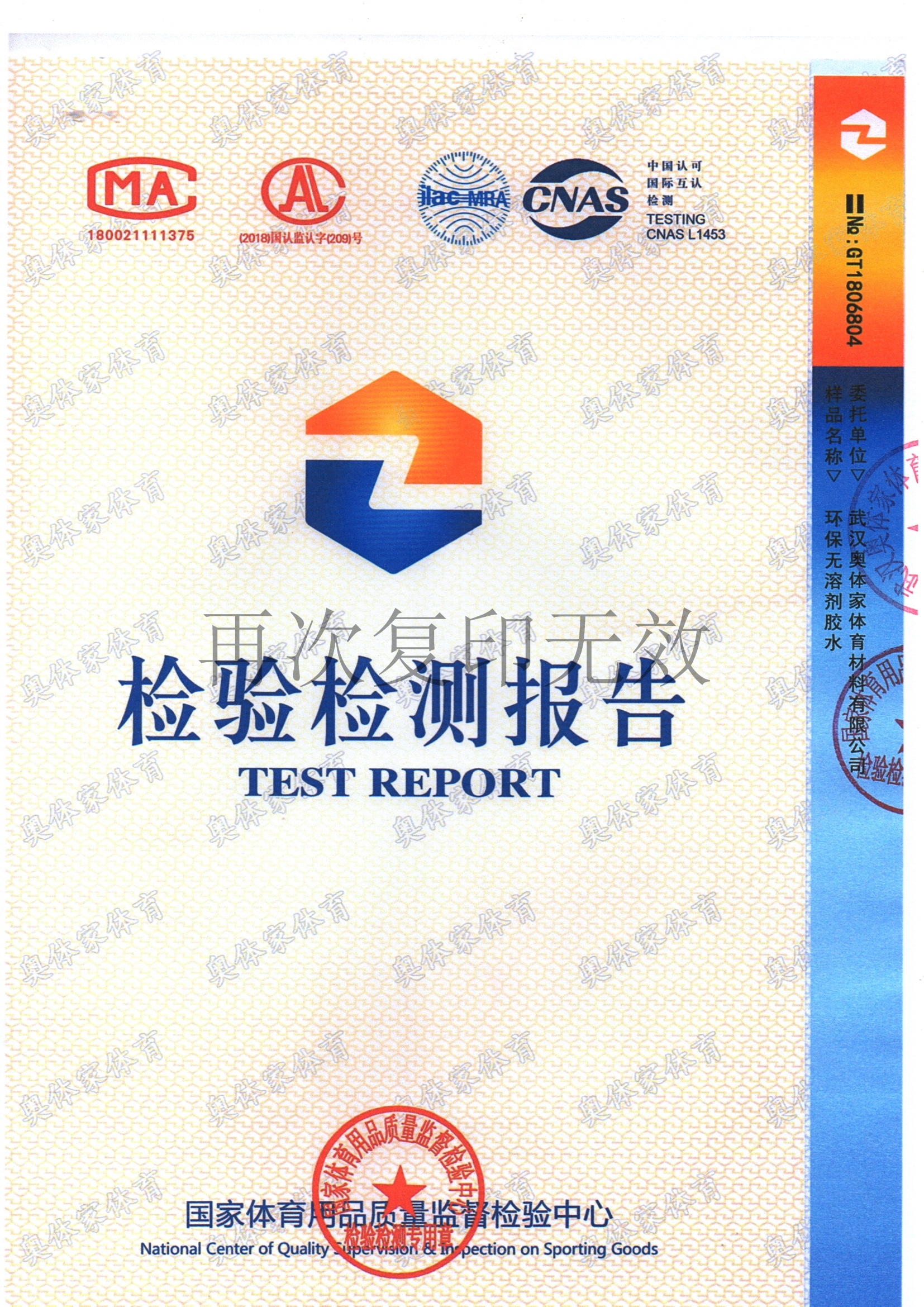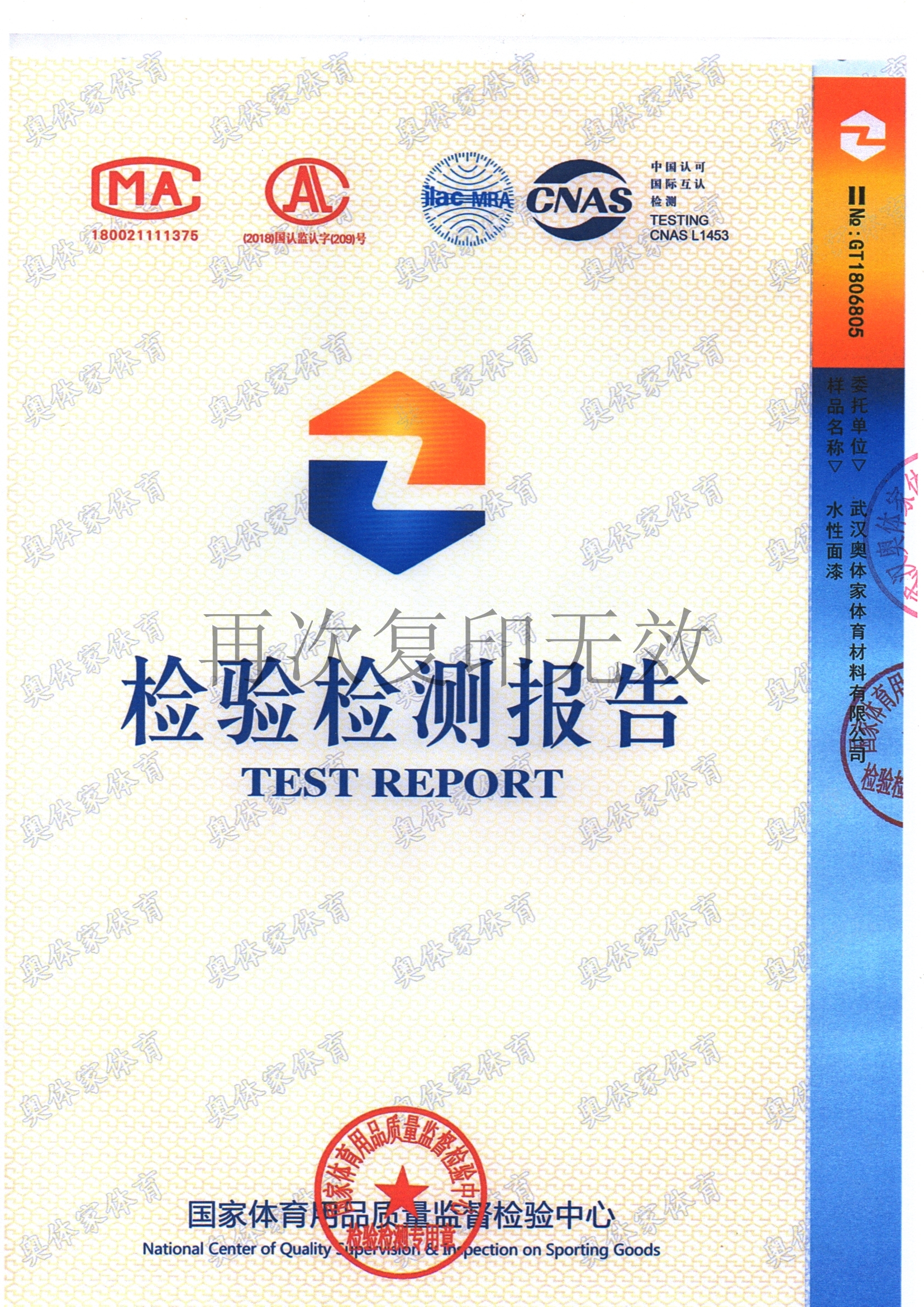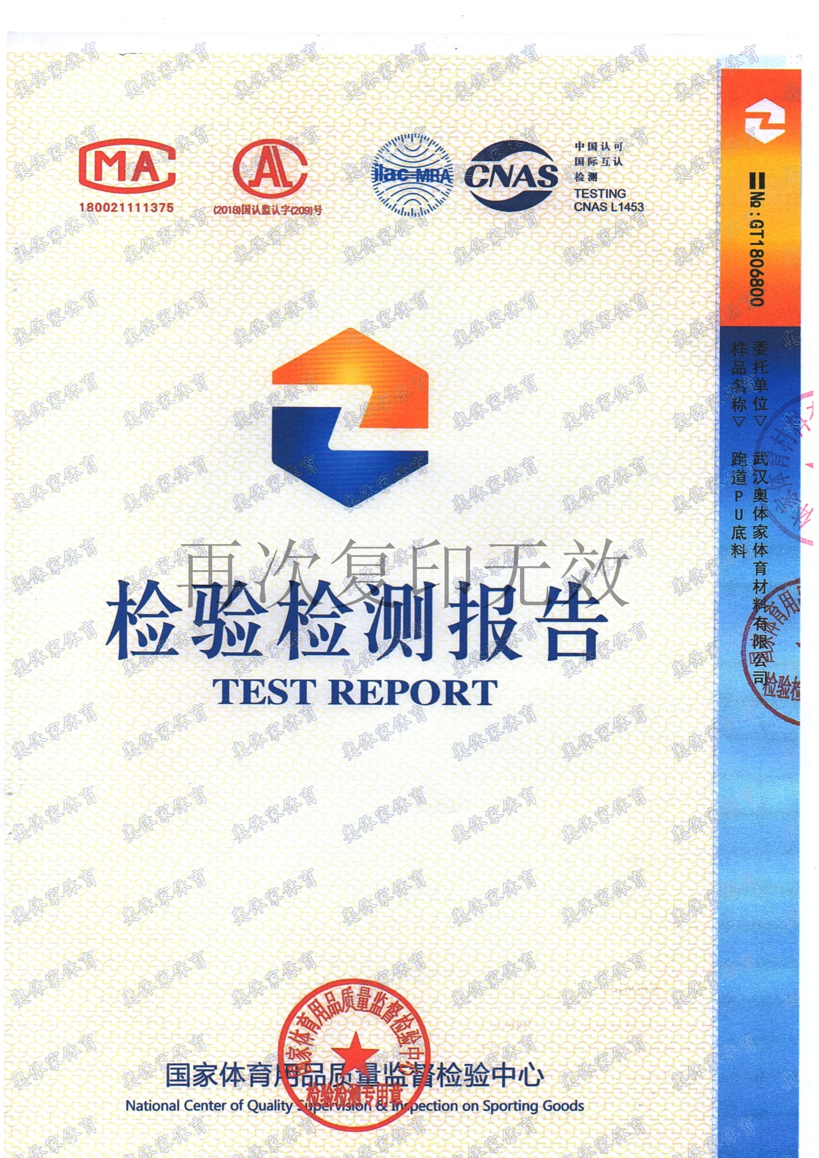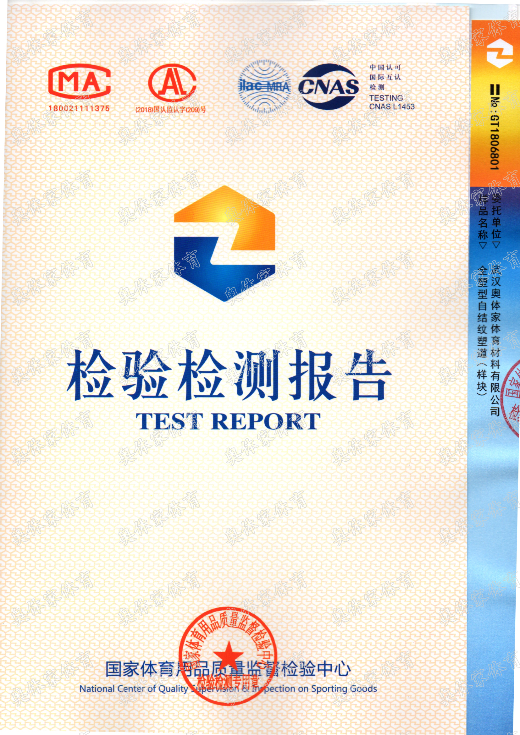 bsports必一体育新国标全塑型自结纹塑胶跑道检测报告